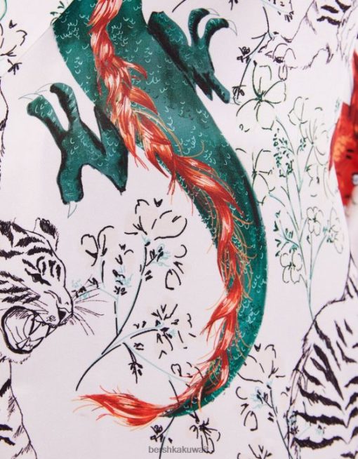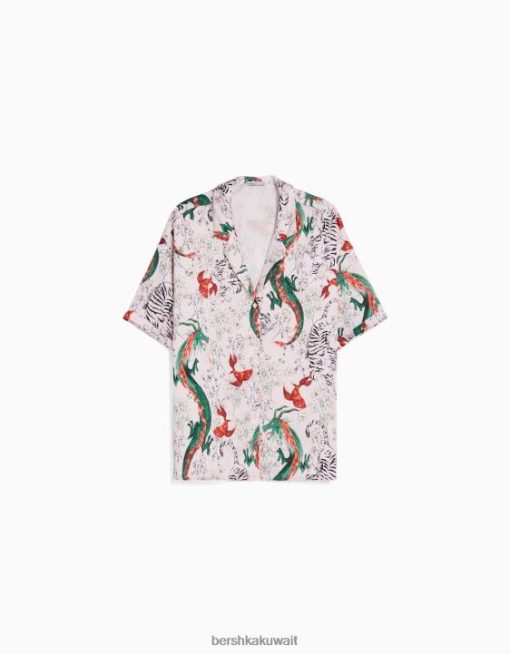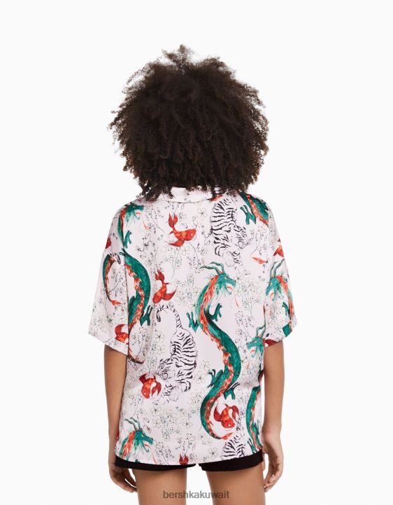 Bershka نحيف قميص ساتان كبير الحجم مطبوع بأكمام قصيرة البنفسجي 804X936 ملابس