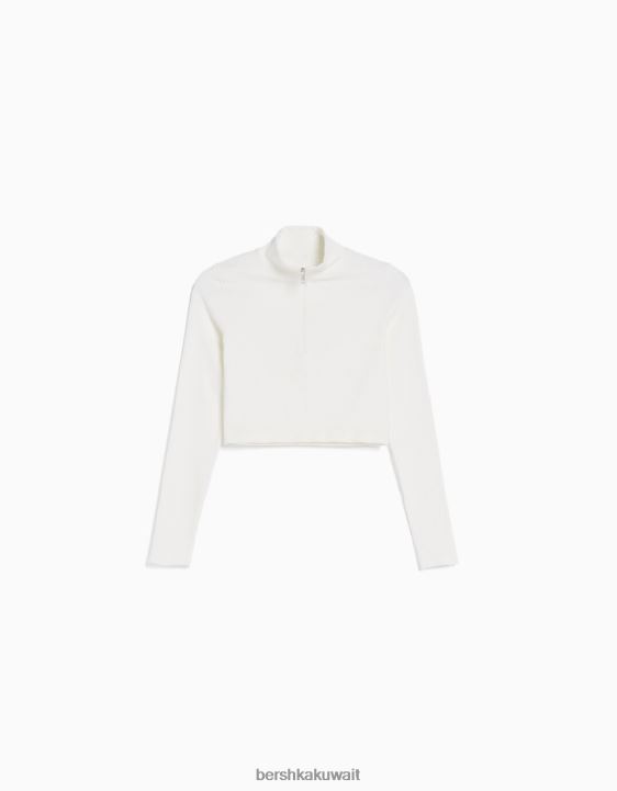 Bershka نحيف قميص طويل الأكمام سلس مع سحاب كريم 804X534 ملابس