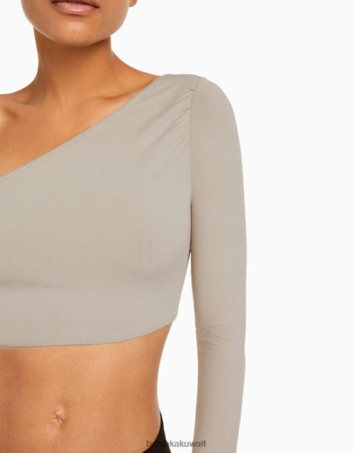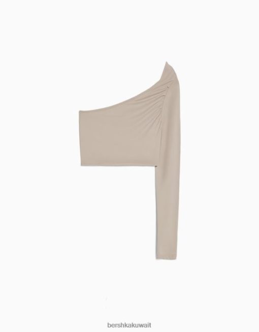Bershka نحيف قميص طويل الأكمام غير متماثل رمل 804X383 ملابس