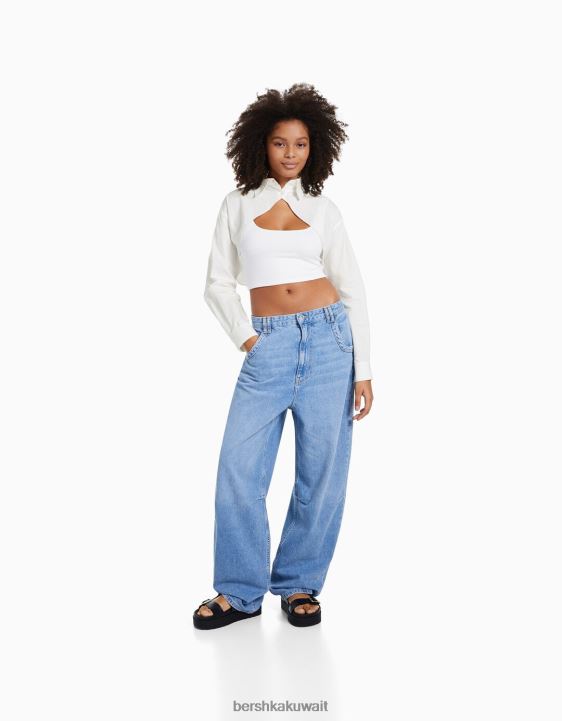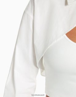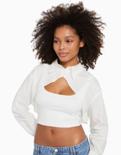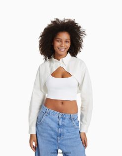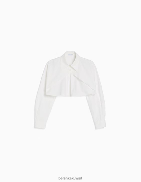 Bershka نحيف قميص قصير الأكمام متقاطع أبيض 804X901 ملابس