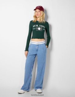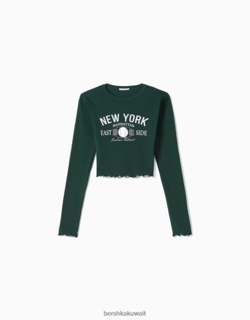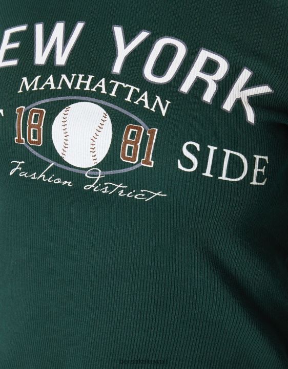 Bershka نحيف قميص قصير الأكمام مع طباعة أخضر 804X531 ملابس