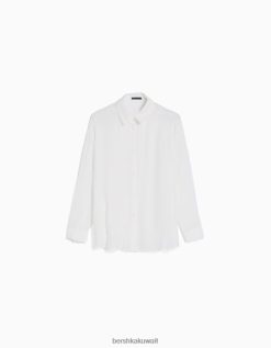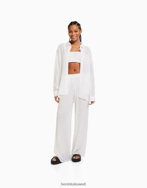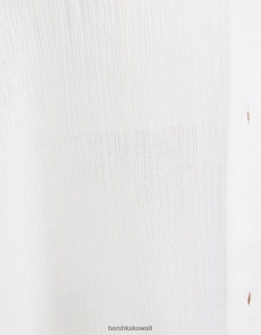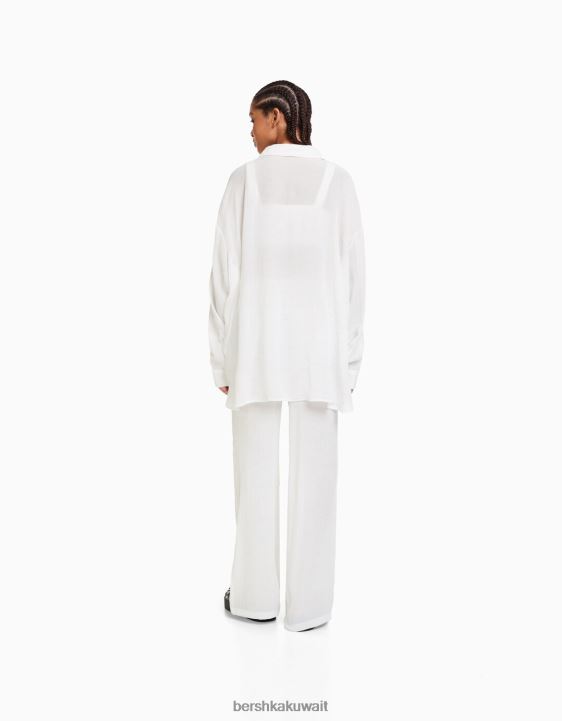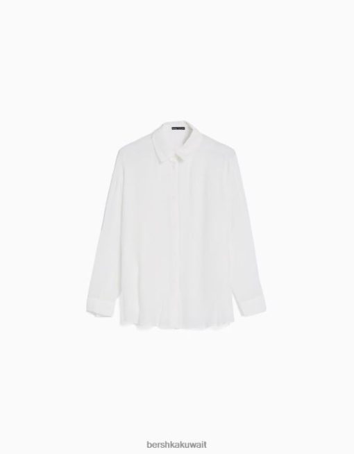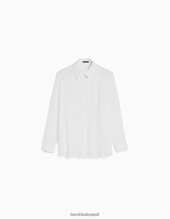 Bershka نحيف قميص كريب بأكمام طويلة كريم 804X917 ملابس