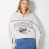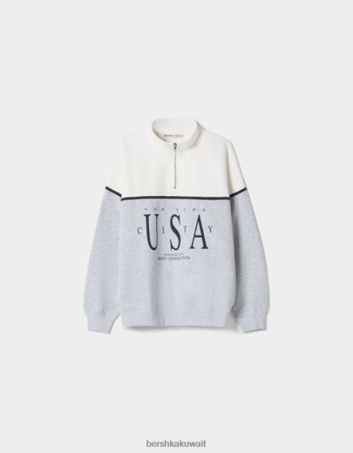 Bershka نحيف قميص من النوع الثقيل المطبوع برقبة عالية رمادي 804X1229 ملابس