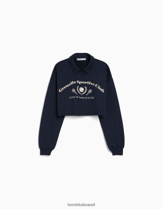 Bershka نحيف قميص من النوع الثقيل مع ياقة بولو القوات البحرية 804X1258 ملابس