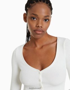 Bershka نحيف كارديجان بأزرار أبيض 804X991 ملابس
