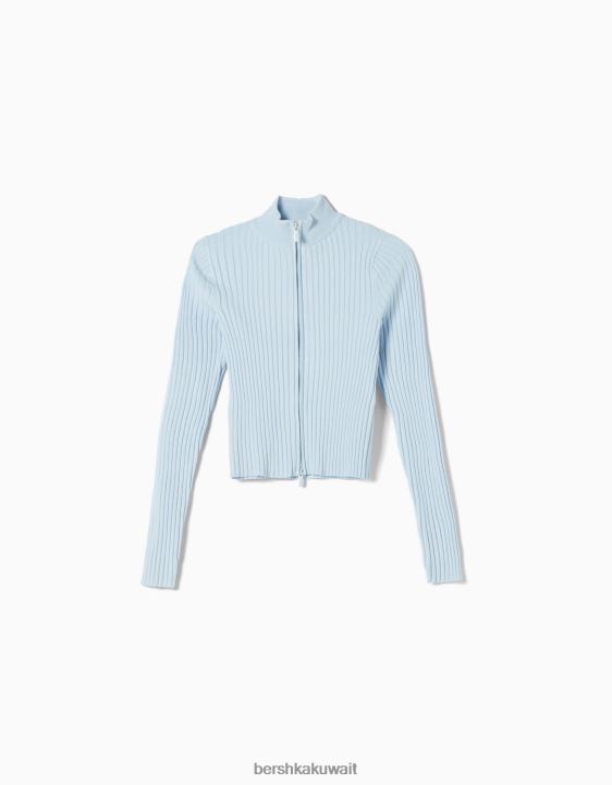 Bershka نحيف كارديجان برقبة عالية وتفاصيل ضلع وسحاب أزرق 804X1050 ملابس