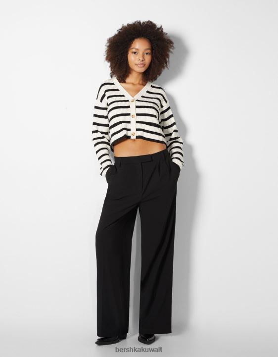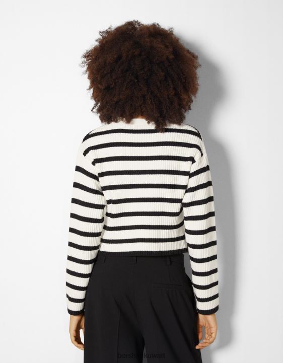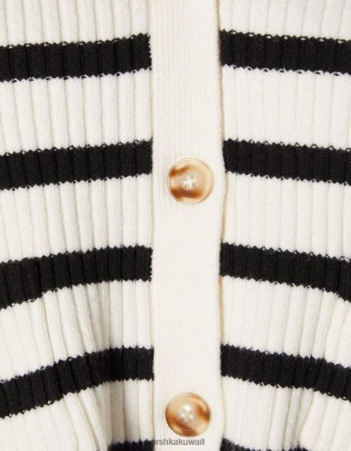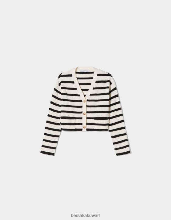 Bershka نحيف كارديجان مضلع مخطط كريم 804X997 ملابس