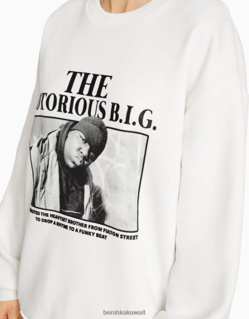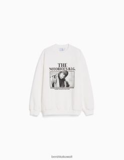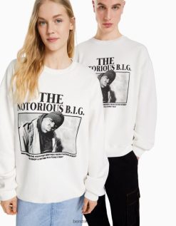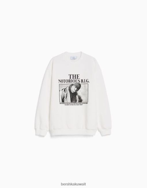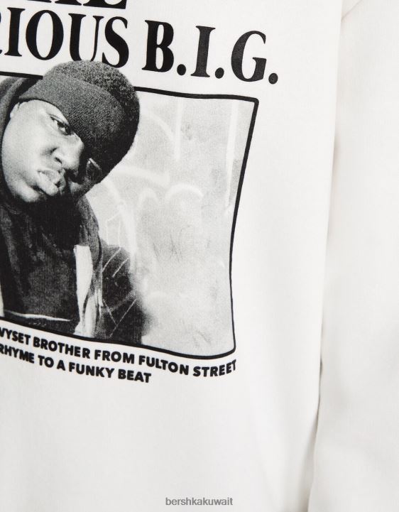 Bershka نحيف كبير سيئة السمعة. سترة مطبوعة أبيض 804X1212 ملابس