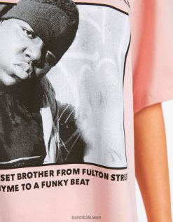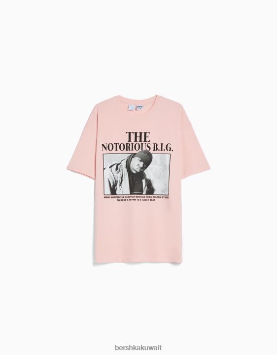 Bershka نحيف كبير سيئة السمعة. طباعة قصيرة الأكمام تي شيرت لون القرنفل 804X545 ملابس