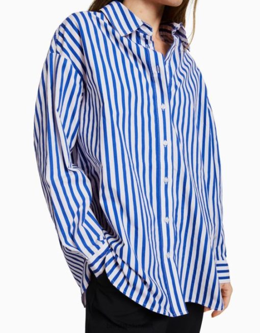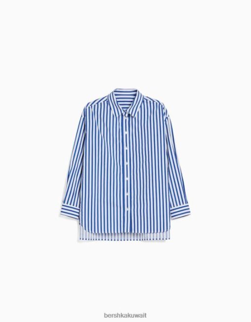 Bershka نحيف كم طويل قميص بوبلين كبير الحجم أزرق 804X946 ملابس