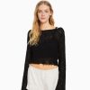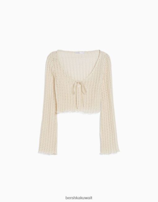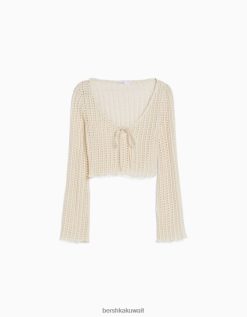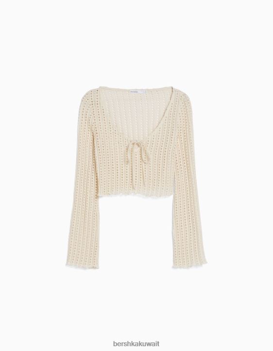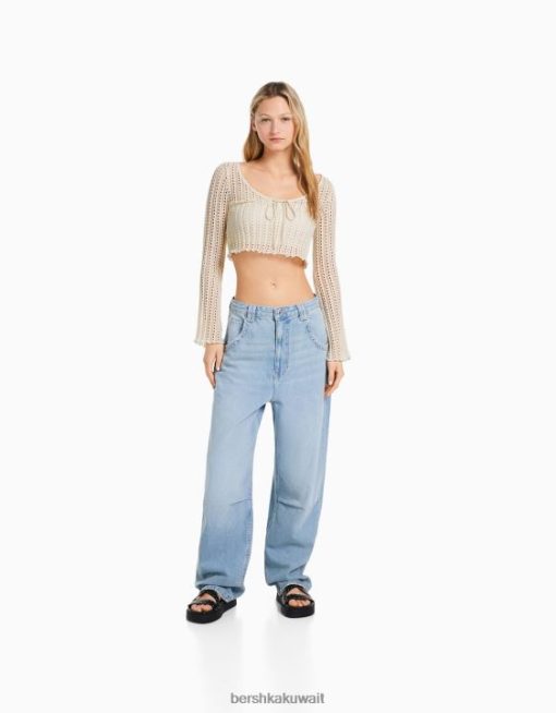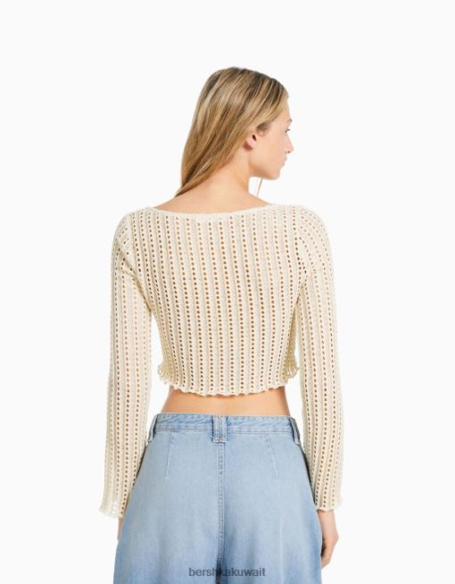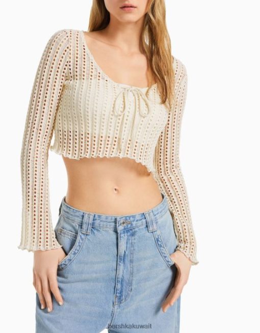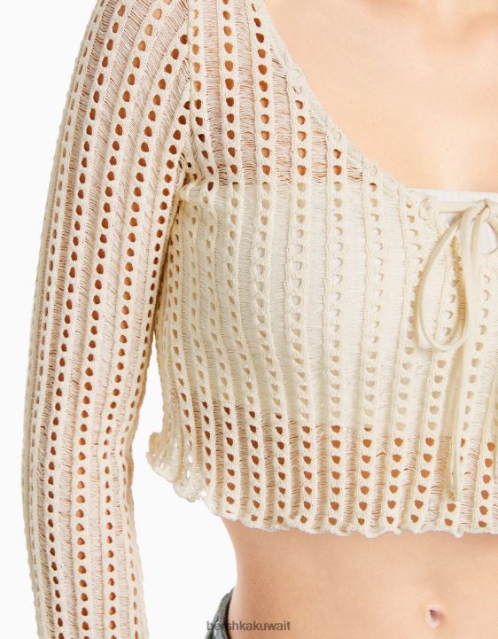 Bershka نحيف كنزة كروشيه بأكمام طويلة واسعة اللون البيج 804X985 ملابس
