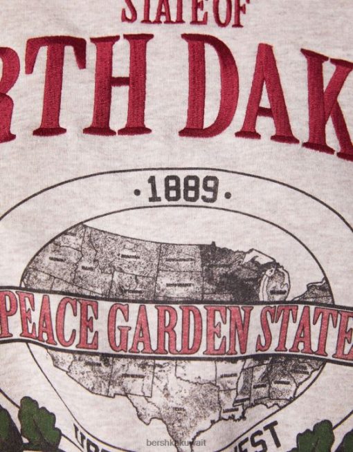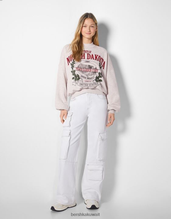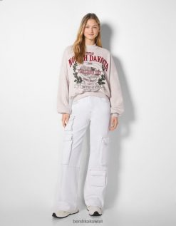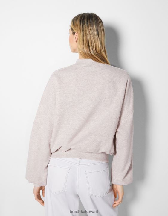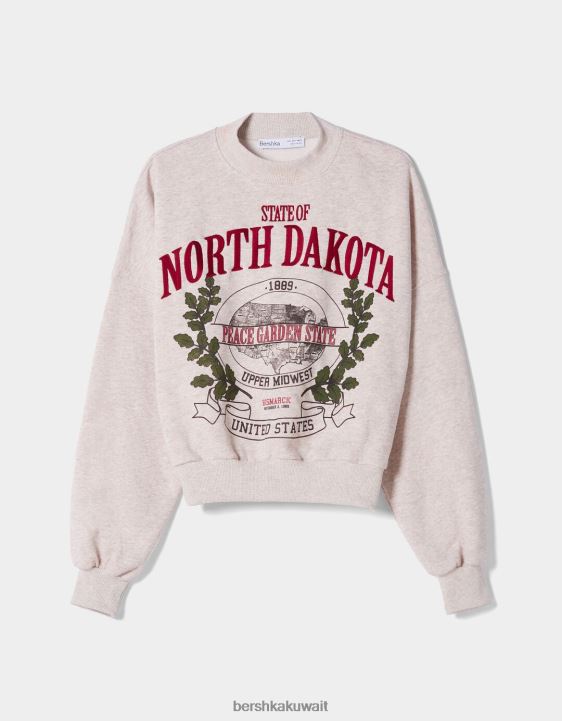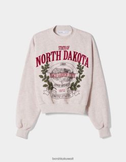 Bershka نحيف كنزة مطبوعة مطرزة رمل 804X1233 ملابس