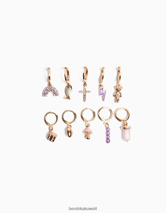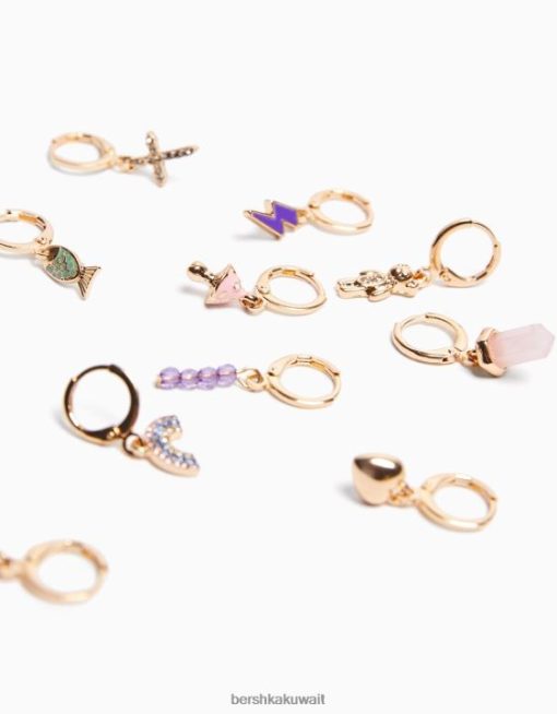 Bershka نحيف مجموعة من 10 أقراط أذن متقاطعة ساحرة ذهب 804X4206 مُكَمِّلات