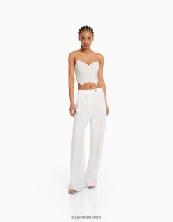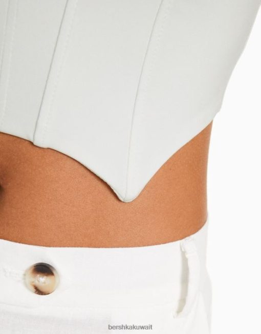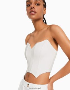 Bershka نحيف مشد قصير بفتحة رقبة على شكل حرف v أبيض 804X691 ملابس