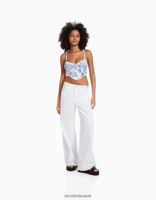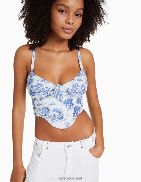 Bershka نحيف مشد قصير من البوبلين مع أحزمة أزرق 804X686 ملابس