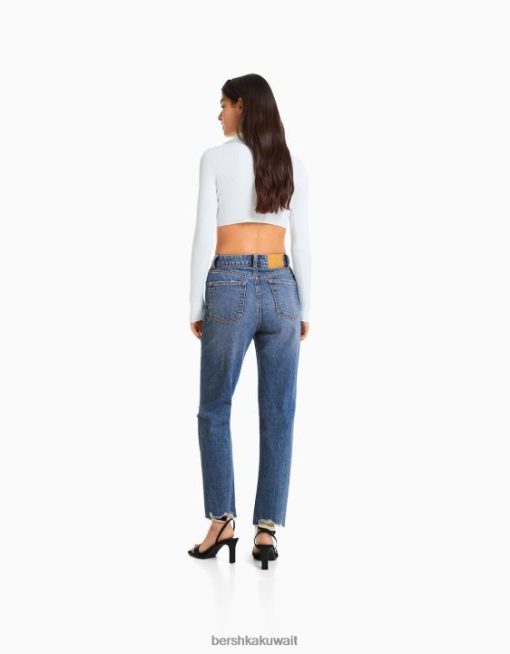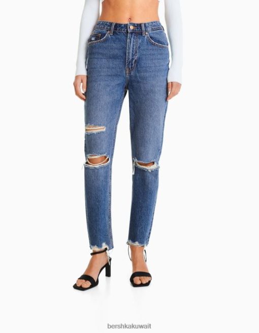 Bershka نحيف ممزق الجينز أمي أزرق 804X1552 ملابس