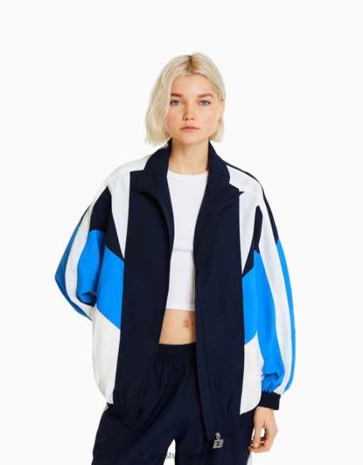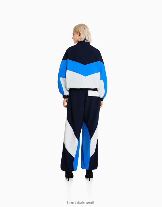 Bershka نحيف نايلون كتلة اللون سترة وسراويل مجموعة أزرق 804X2062 ملابس