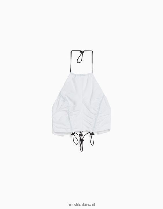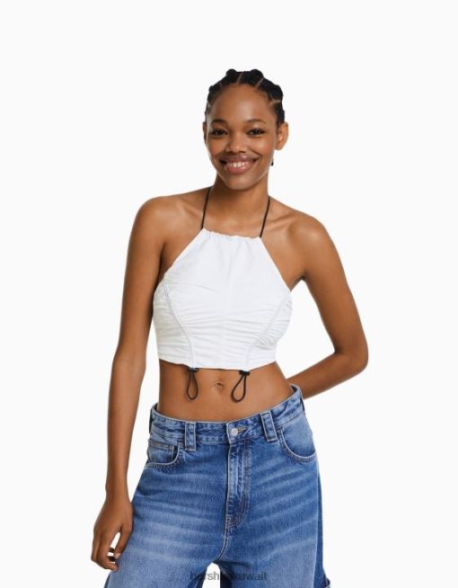 Bershka نحيف نايلون هالترنك أعلى المحاصيل مع سدادات أبيض 804X793 ملابس