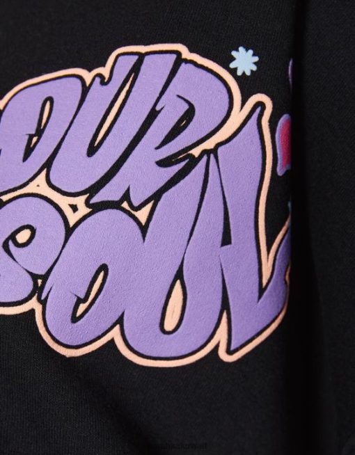 Bershka نحيف هوديي مطبوع أسود 804X1282 ملابس