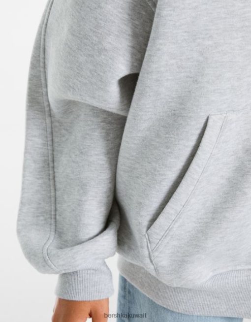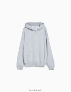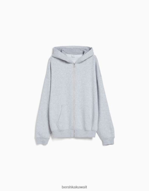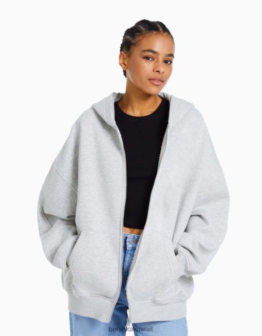 Bershka نحيف هودي بسحاب كبير الحجم رمادي 804X1227 ملابس